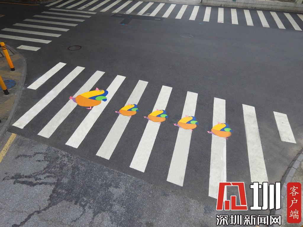 深圳試點(diǎn)兒童友好型交通設(shè)施,圖為彩繪有企鵝的斑馬線