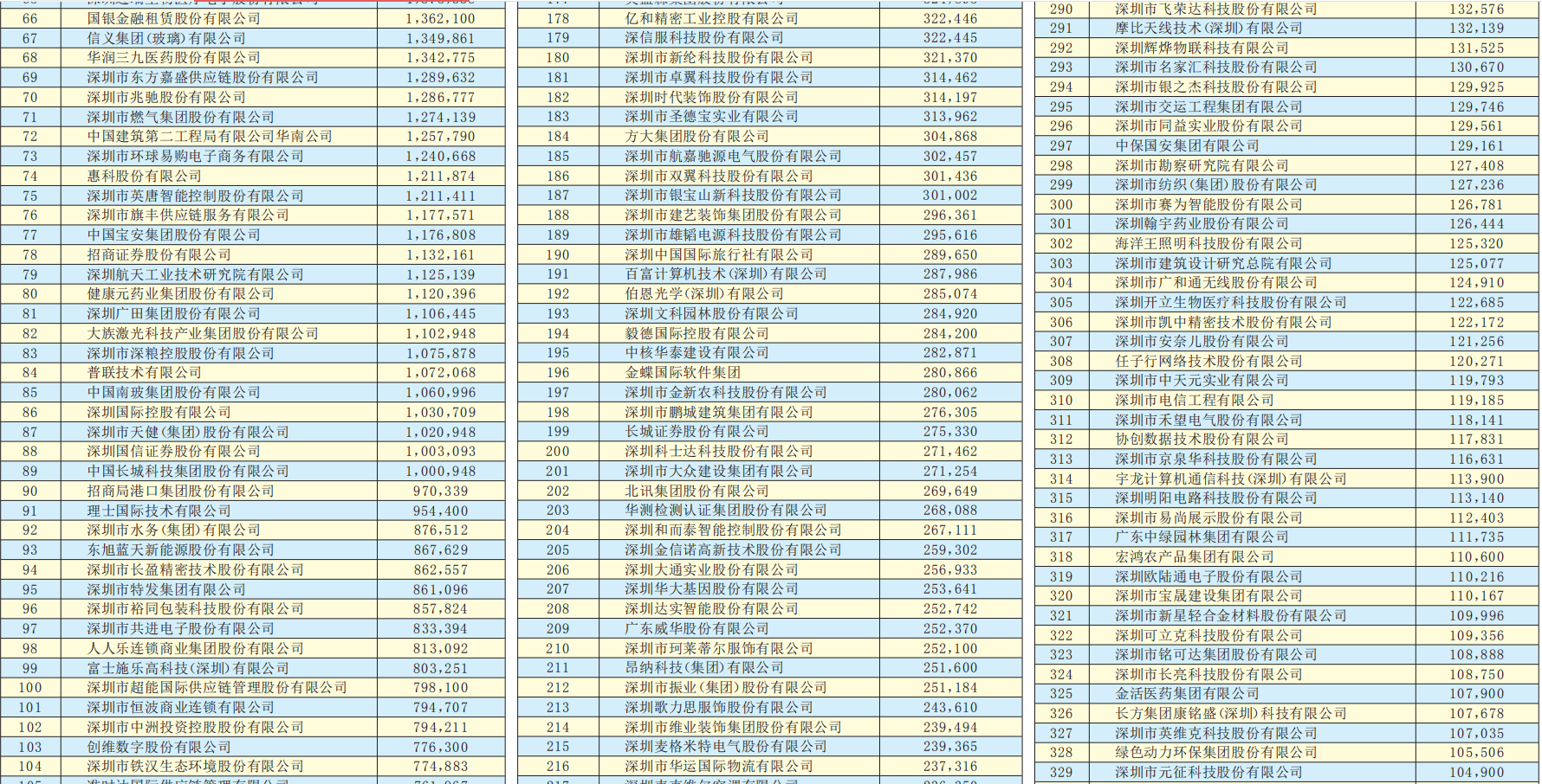 中國平安保險(集團)股份有限公司、華為投資控股有限公司、正威國際集團有限公司居排行榜前三位?!?019深圳500強企業(yè)發(fā)展報告》在中國企業(yè)聯(lián)合會、中國企業(yè)家協(xié)會的指導下,在有關部門的支持下,由深圳企聯(lián)編撰,旨在加快打造粵港澳大灣區(qū)核心引擎城市,將深圳建設成為具有世界影響力的創(chuàng)新創(chuàng)意之都,做強做優(yōu)實體經(jīng)濟,促進企業(yè)品牌化、國際化的高質量發(fā)展,增強各界對企業(yè)社會價值的廣泛認知,為深圳經(jīng)濟創(chuàng)造新的可持續(xù)增長動能。