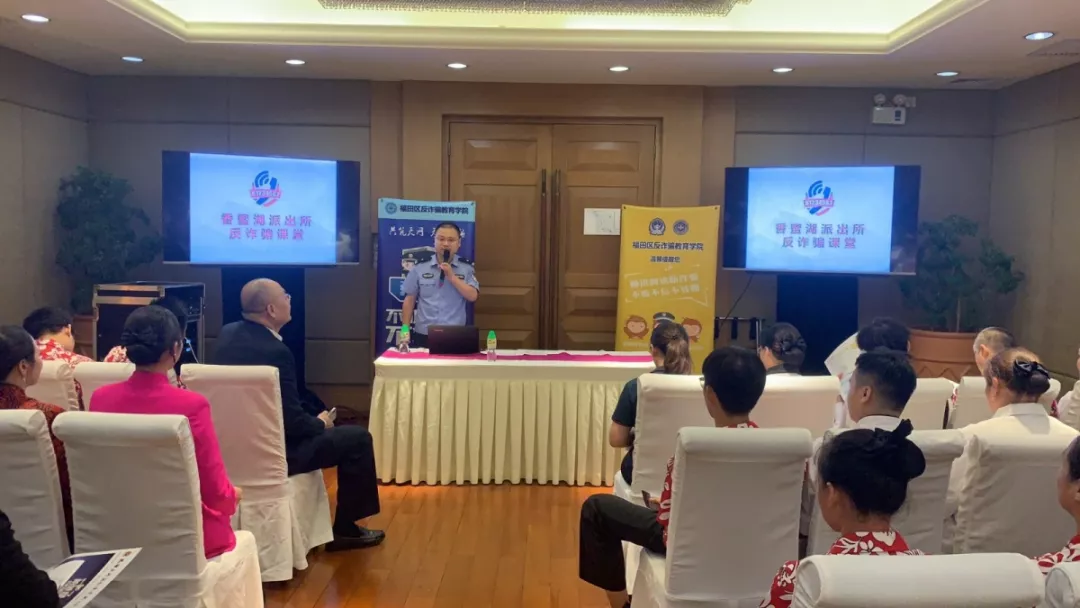 同時(shí),第37場(chǎng)反詐騙教育學(xué)院公開課在香蜜湖派出所轄區(qū)丹桂軒開展。此次課程主要針對(duì)餐廳服務(wù)人員進(jìn)行。根據(jù)服務(wù)人員工作時(shí)間長(zhǎng),平時(shí)休閑娛樂活動(dòng)單一的特點(diǎn),反詐講師特別著重講解“終結(jié)詐騙”小程序游戲的玩法,希望餐飲從業(yè)人員休息時(shí)多學(xué)習(xí)反詐知識(shí),從而達(dá)到反詐目的。