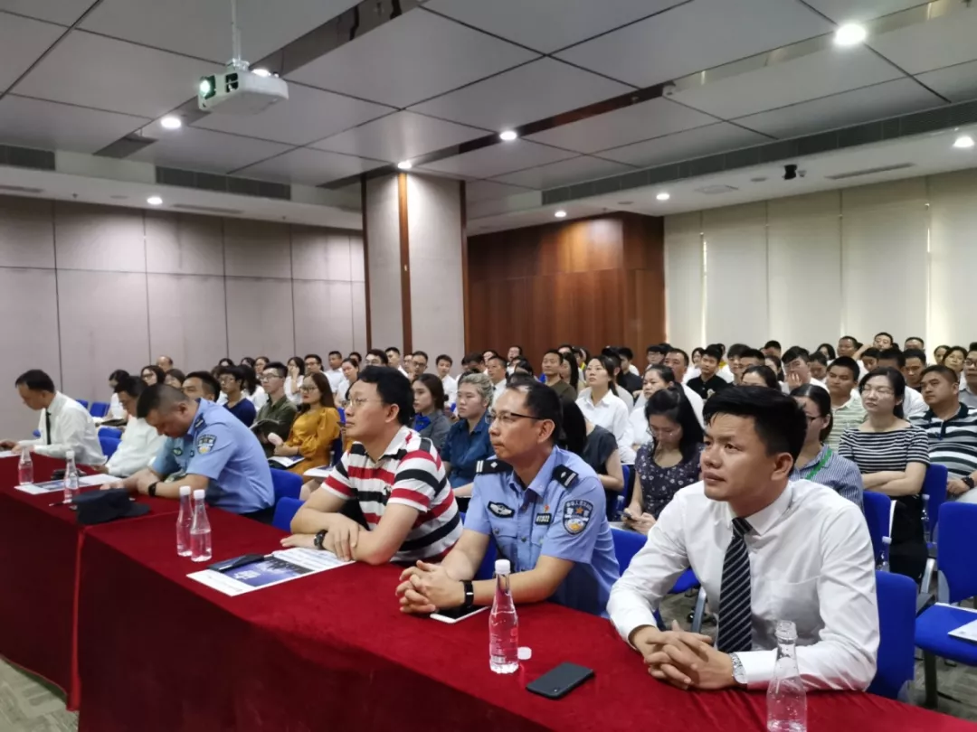 7月29日,福田區(qū)反詐騙教育學(xué)院第36場(chǎng)公開課走進(jìn)泰然大廈,天安數(shù)碼城園區(qū)中近300家企業(yè)、近800位員工參與了此次課程。課程主要由福田區(qū)反詐民警講師莫基鋒警官進(jìn)行講解,莫警官根據(jù)園區(qū)內(nèi)企業(yè)財(cái)務(wù)人員較多的特點(diǎn)著重解析財(cái)務(wù)人員如何防騙及騙后如何補(bǔ)救。會(huì)后,近50家企業(yè)向藍(lán)馬甲宣傳隊(duì)員登記,希望反詐周刊能定期送到企業(yè),供員工及客戶閱讀,一起為反詐出力。
