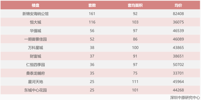深圳一手住宅成交量TOP10(7.22-7.28)