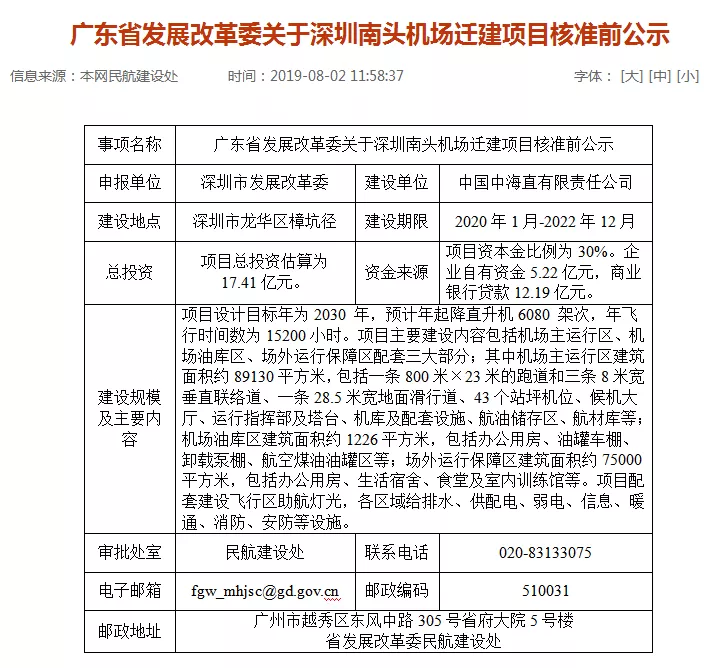 《關(guān)于深圳南頭機場遷建項目核準前公示》。