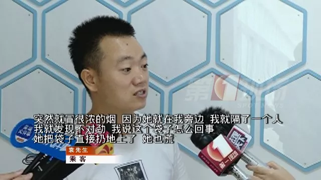 市民袁先生告訴記者,因?yàn)樾枰ボ?chē)公廟辦事自己碰巧也在這趟列車(chē)上,當(dāng)時(shí)他看到一名20多歲的女子,身上背著的袋子突然冒煙整個(gè)車(chē)廂的乘客都慌張地向周?chē)惚埽?/span>隨后這名女子在慌亂中把袋子直接扔在了車(chē)廂的地板上。