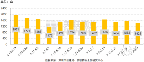 二手住宅方面,上周全市共過戶成交二手住宅1425套/11.8萬㎡,環(huán)比分別下降8.2個(gè)百分點(diǎn)和8.3個(gè)百分點(diǎn)。從近12周的每周成交量趨勢圖可以看出,上周成交套數(shù)環(huán)比小幅下降。