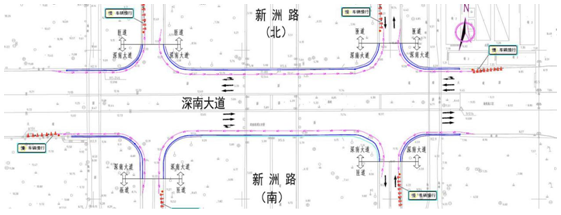 1.占用深南新洲立交A、B、C、D匝道段內側各一條約3m寬車道,余下3米寬行車道可正常通行。