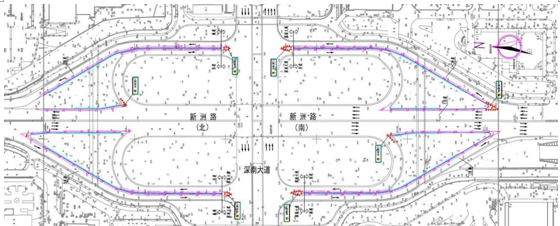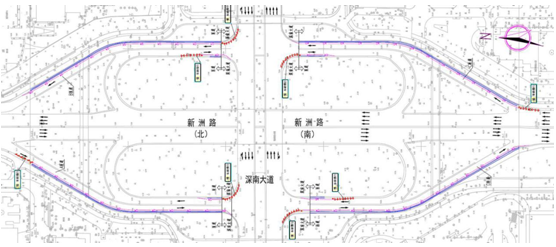 深南新洲立交新型防撞墻整治提升工作主要包括:一是對立交及匝道的舊防撞墻進行拆除并安裝新型預制防撞墻;二是對立交及周邊部分現(xiàn)狀瀝青路面病害進行維修翻新重新罩面;三是拆除橋梁段欄桿同時新建裝飾鋁扣板;四是對立交護欄進行刷新提升。