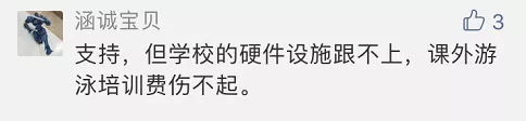 還有網(wǎng)友表示:“這些年,光是在游泳方面的花費(fèi)就將近8萬元,還不算家長付出的精力以及她去其他城市參加考試的花費(fèi)。如果學(xué)校能夠有一些游泳方面的課程指引或相應(yīng)的指導(dǎo)措施,家長也能省許多事。”