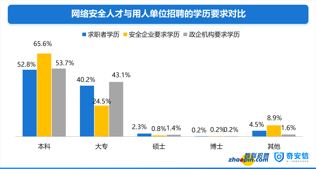 安全運(yùn)營(yíng)與服務(wù)類(lèi)的崗位成為政企機(jī)構(gòu)招聘最多的崗位類(lèi)型,占比高達(dá)32.7%,首次超過(guò)研發(fā)測(cè)試崗位。隨著,政企機(jī)構(gòu)安全建設(shè)水平的提升,安全運(yùn)營(yíng)與服務(wù)越來(lái)越受到用人單位的重視,未來(lái)的市場(chǎng)需求很有可能持續(xù)擴(kuò)大。