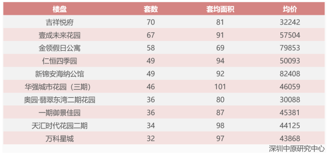 深圳一手住宅成交量TOP10(8.5-8.11)