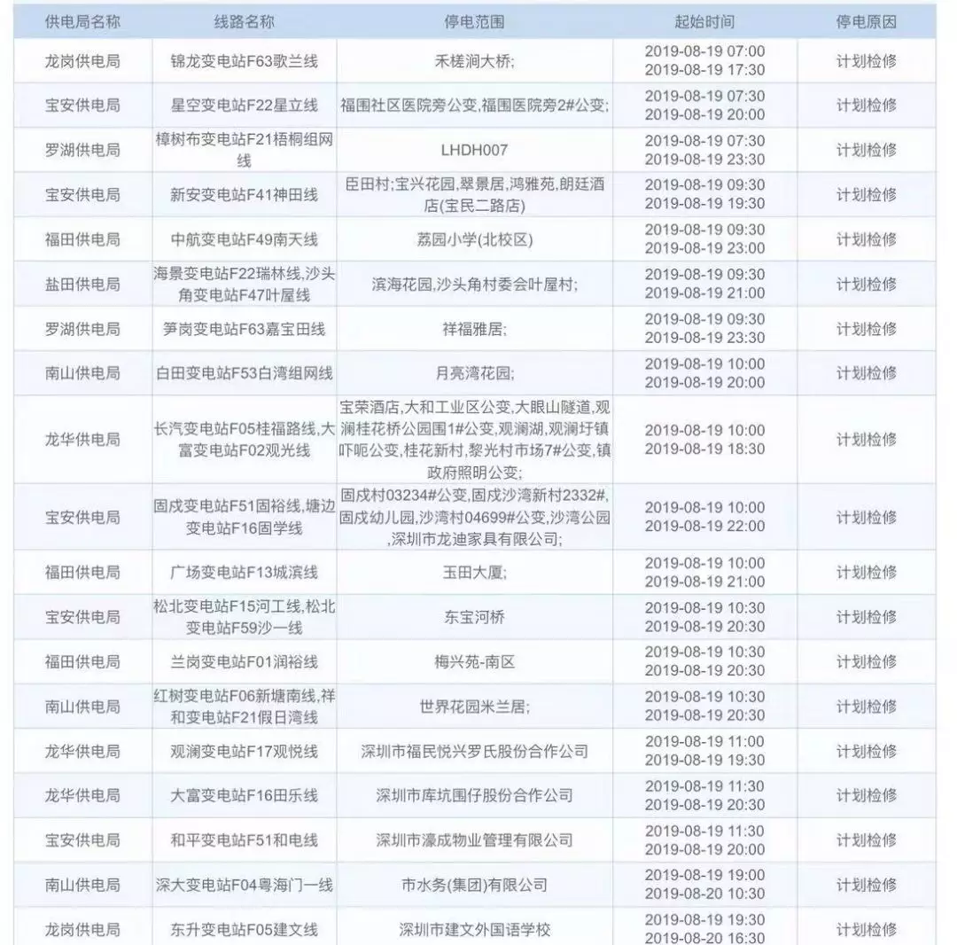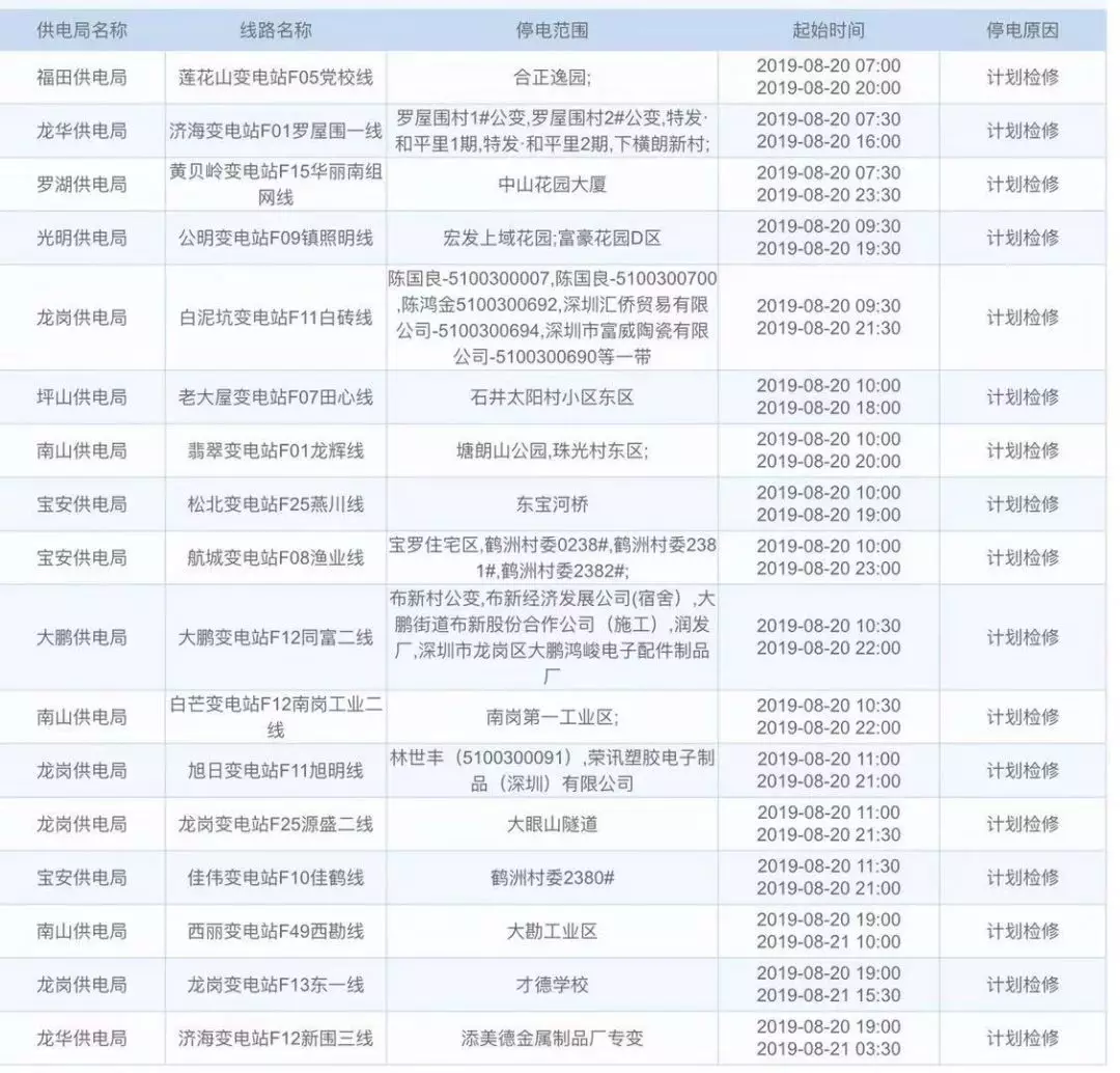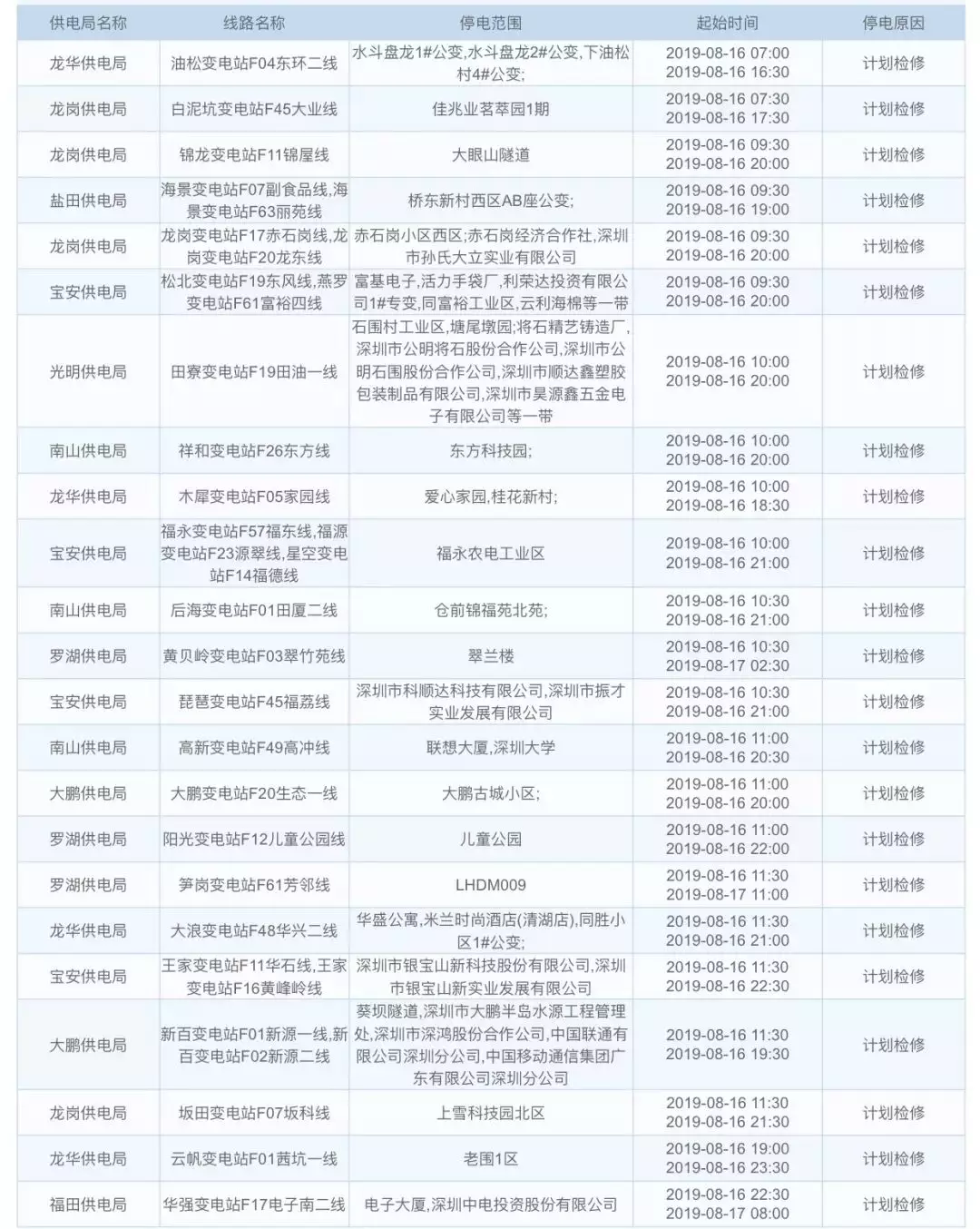 據(jù)中國(guó)南方電網(wǎng)信息,接下來(lái)這幾天深圳這些地方計(jì)劃停電,快看看有沒(méi)有你們家。