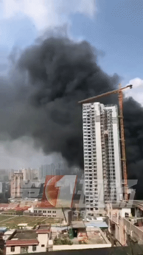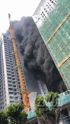 目擊市民表示,在布吉德興花園西側的一個在建樓盤工地里,疑似發(fā)生火情。現(xiàn)場冒出大量黑煙,升起的高度超過了一旁三十多層高的樓盤。