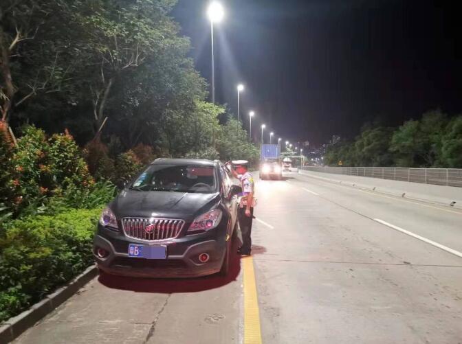 據(jù)“深圳交警權(quán)威發(fā)布”微信公眾號消息,2019年8月6日18時30分,黃某平無證駕駛粵B7K***黑色小型轎車從鹽田三洲田準(zhǔn)備回家。19時48分許,途經(jīng)北山道—鹽田隧道路段時,遇到交警設(shè)卡查車,情急之下,黃某平立馬把車停在了應(yīng)急車道上。