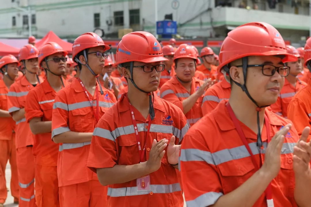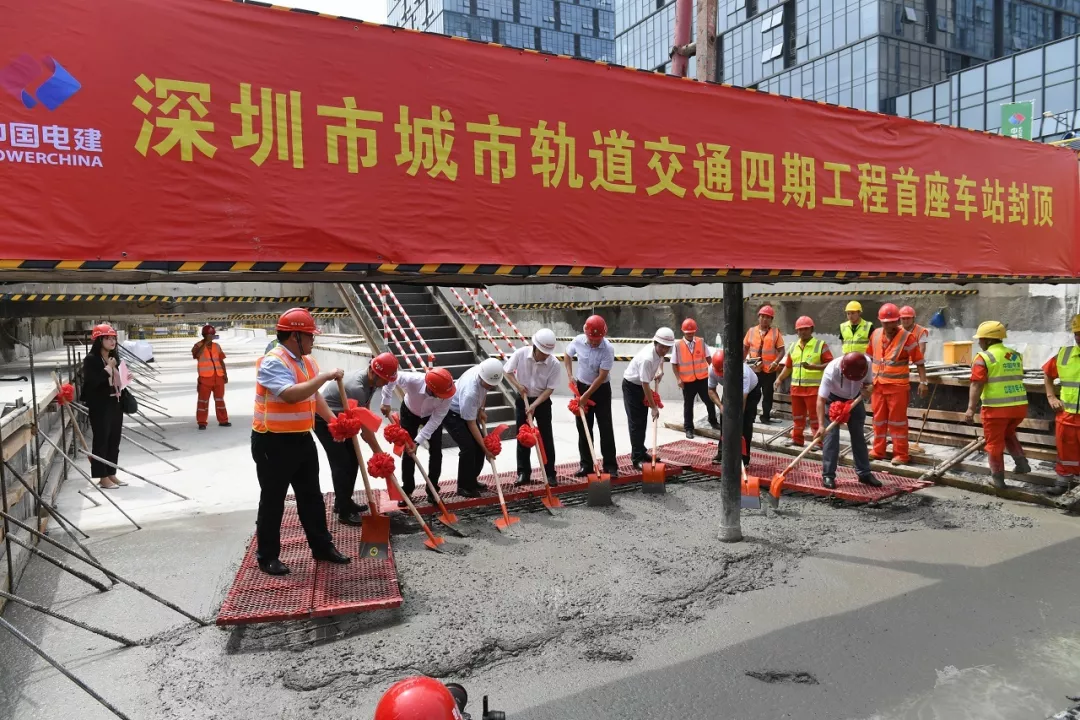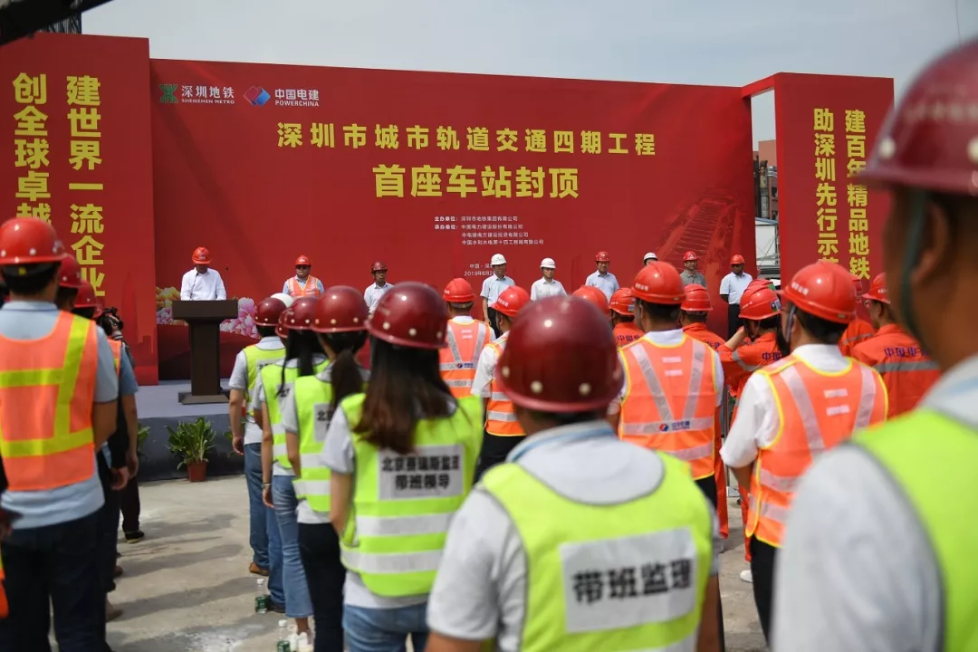▲深圳市城市軌道交通四期工程首座車站-洲石路站封頂儀式現(xiàn)場(chǎng)