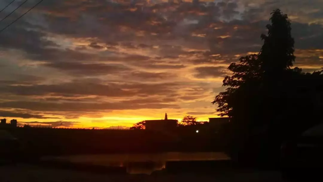 #深圳晚霞#應(yīng)該就是在氣象上所說的臺風(fēng)來臨前的“反暮光”。它一般在臺風(fēng)來襲前一兩天的日落時分出現(xiàn),西方地平線下發(fā)出數(shù)條放射狀、紅藍(lán)相間的光芒,發(fā)射到天頂,然后收斂于東方與太陽對稱的地方,映紅整個天空。