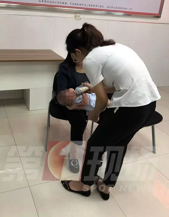 ▲熱心居民在派出所內(nèi)臨時(shí)照顧男嬰