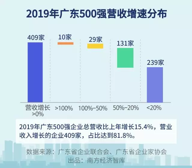 2019年入榜廣東民營(yíng)100強(qiáng)企業(yè)中前10強(qiáng)的平均營(yíng)業(yè)收入比上年增長(zhǎng)24%。
