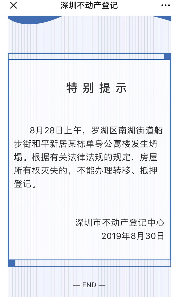 “拆遷已動(dòng)工”“拆遷物業(yè)”“房子倒了,坐等拆遷”……28日,羅湖區(qū)和平新居單身公寓樓發(fā)生沉降傾斜。還沒(méi)了解清楚事情真相,朋友圈就開始傳出該小區(qū)“房?jī)r(jià)暴漲”的消息。據(jù)媒體報(bào)道,事故發(fā)生后,購(gòu)房平臺(tái)顯示該公寓的房?jī)r(jià)暴漲高達(dá)100萬(wàn),連旁邊的鐵路小區(qū)也“沾了光”,坐地起價(jià),一套80多平的房子當(dāng)天猛漲30萬(wàn)。