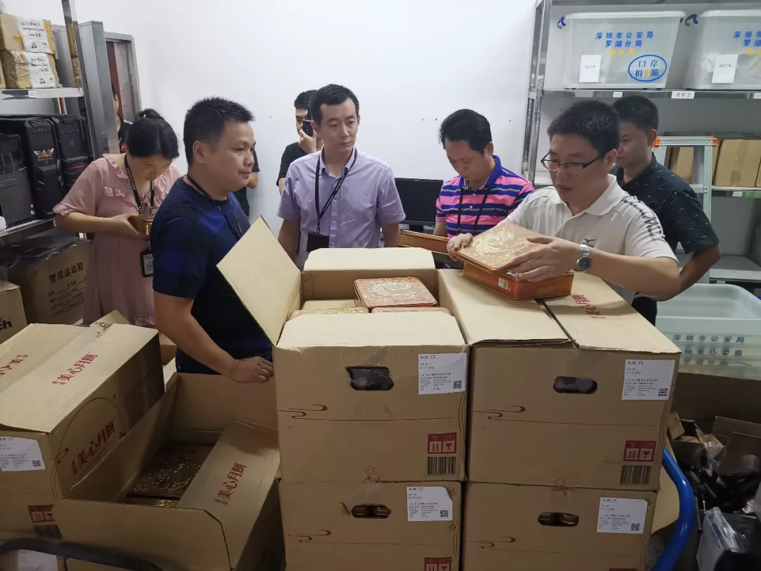 9月3日,深圳市市場監(jiān)督管理局羅湖監(jiān)管局接到線索:一消費者通過微信渠道購買一批香港知名品牌月餅,收貨后懷疑為假冒商標(biāo)食品并向口岸派出所報案。當(dāng)天上午,羅湖監(jiān)管局執(zhí)法人員與羅湖公安分局口岸派出所民警迅速組成聯(lián)合執(zhí)法組展開行動,查獲涉嫌假冒香港知名品牌的月餅300盒,經(jīng)商標(biāo)權(quán)利人現(xiàn)場鑒定,初步認(rèn)定其中260盒為侵犯商標(biāo)權(quán)食品,40盒為香港生產(chǎn)的無中文標(biāo)簽食品。