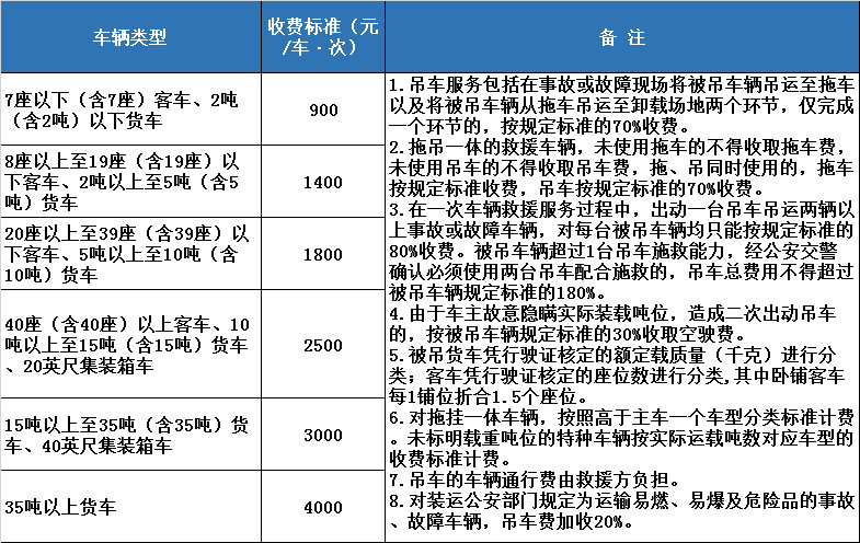 廣東省高速公路拖車服務(wù)收費(fèi)標(biāo)準(zhǔn)見下表: