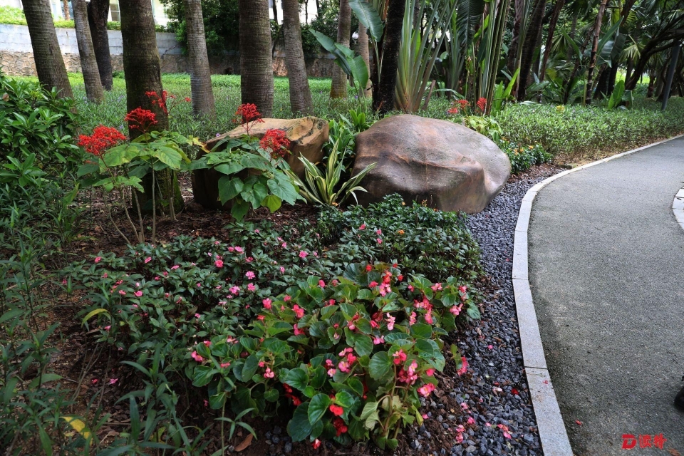 除了花帶,市城市管理和綜合執(zhí)法局還在深南大道行人過(guò)馬路的地方新打造了10個(gè)花園路口,每個(gè)小花園5-10平方米,結(jié)合原有路口的景觀設(shè)計(jì),融入海綿生態(tài)理念,增加蜜源、觀花和色葉植物,組合成花境,讓在路口等紅綠燈的市民能欣賞到深圳的自然之美。