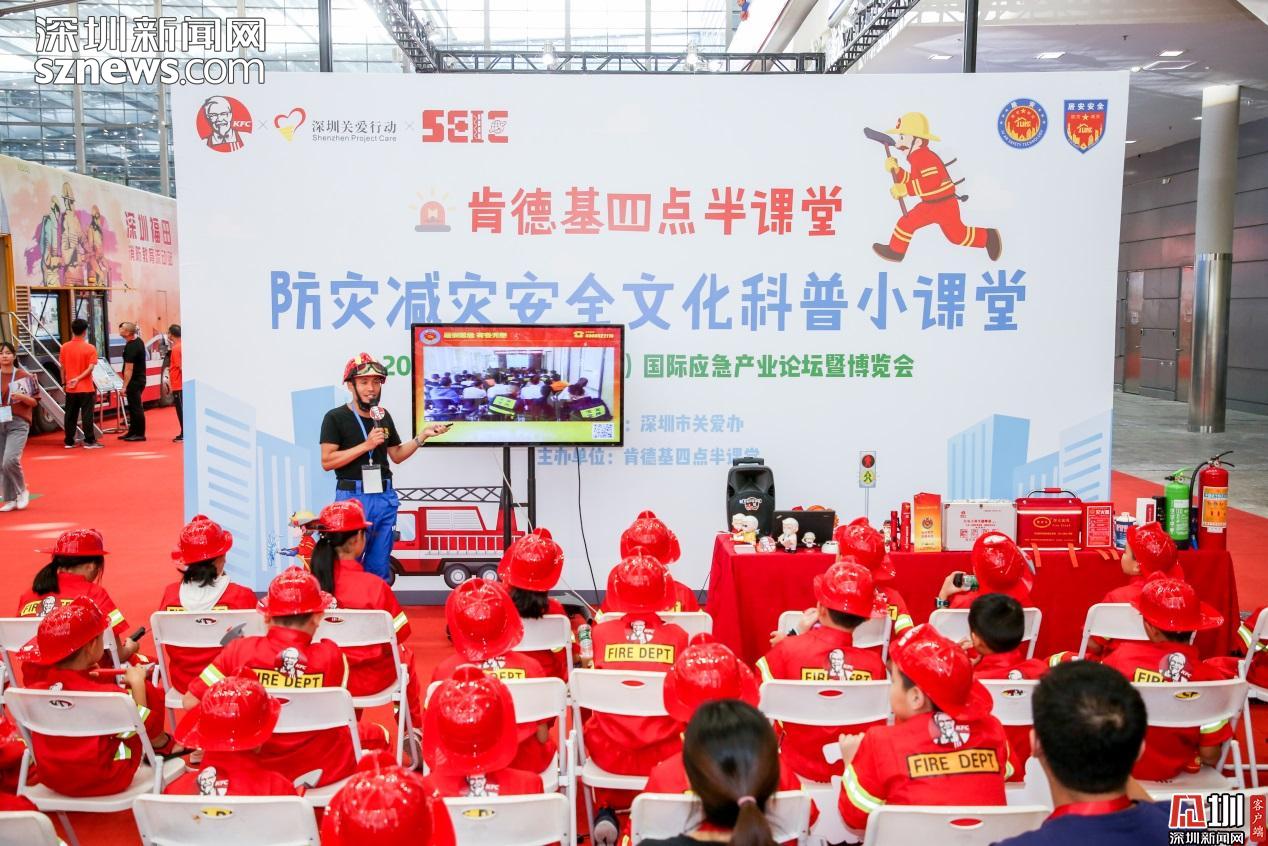 見(jiàn)圳客戶端、深圳新聞網(wǎng)2019年9月23日訊(見(jiàn)圳客戶端、深圳新聞網(wǎng)記者 陳彬)頭戴消防安全帽,手持mini滅火器,身穿靚麗正紅的消防服裝,9月21日,在深圳會(huì)展中心的深圳國(guó)際應(yīng)急博覽會(huì)上,一群可愛(ài)的小小消防員們吸引了全場(chǎng)的目光。原來(lái),這是“肯德基四點(diǎn)半防災(zāi)減災(zāi)科普小課堂”正在深圳國(guó)際應(yīng)急博覽會(huì)上舉行。30名小朋友們裝備齊全,神采奕奕地 cosplay了一把“小小消防員”。他們認(rèn)真聽(tīng)消防教官的科普演講,參觀消防教育科普雙層巴士,近距離感受消防車(chē)、應(yīng)急無(wú)人機(jī)等專(zhuān)業(yè)的防災(zāi)救援高科技裝備的硬核魅力……獨(dú)特的消防體驗(yàn)讓同學(xué)們十分興奮。
