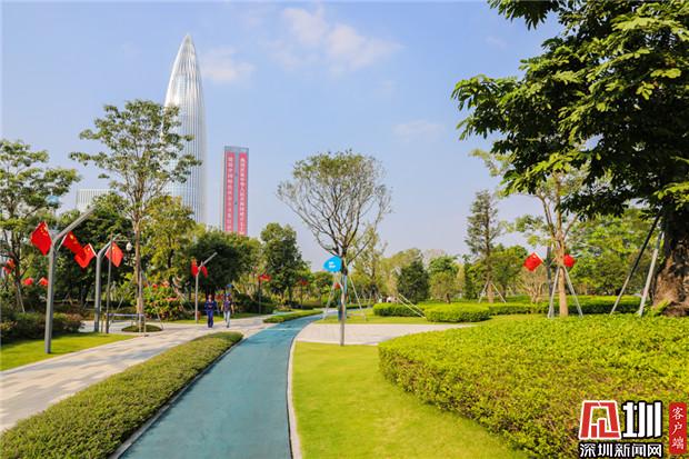 深圳人才公園內(nèi),國慶假日的氛圍濃厚。