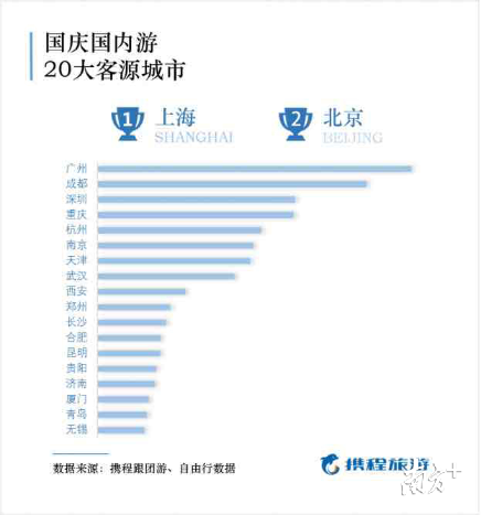 國(guó)慶假期20大客源城市:上海和北京出行人數(shù)最多