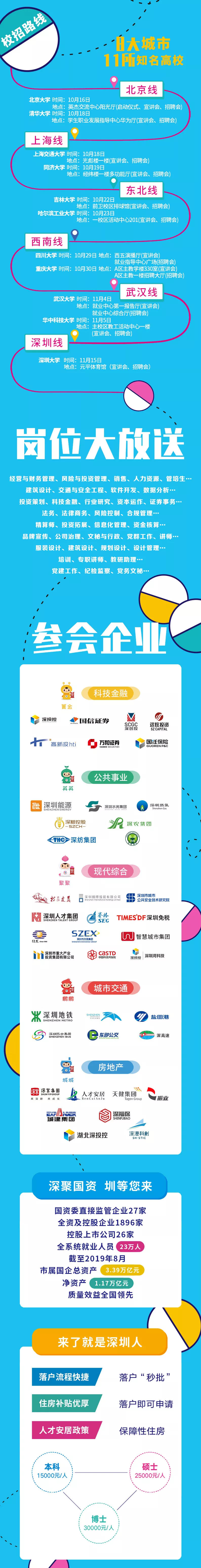 見圳客戶端·深圳新聞網(wǎng)2019年10月10日訊 據(jù)“深圳國資”微信公眾號消息,深圳市屬國企開啟“花式”組團校招模式,“菁英聚鵬城”深圳市屬國企2020校園招聘會來了!