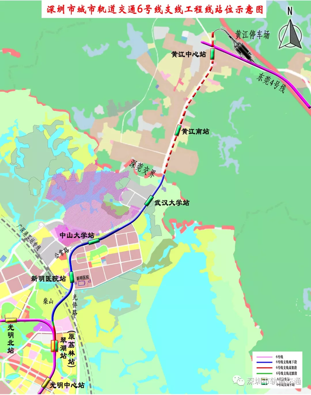 地鐵6號線支線位于深圳市光明區(qū),線路起點設(shè)置于6號線翠湖站(不含土建部分)東側(cè),線路終點設(shè)置于公常路深莞邊界東莞黃江鎮(zhèn),共設(shè)3站4區(qū)間。其中翠湖站為6號線支線與6號線的換乘站。