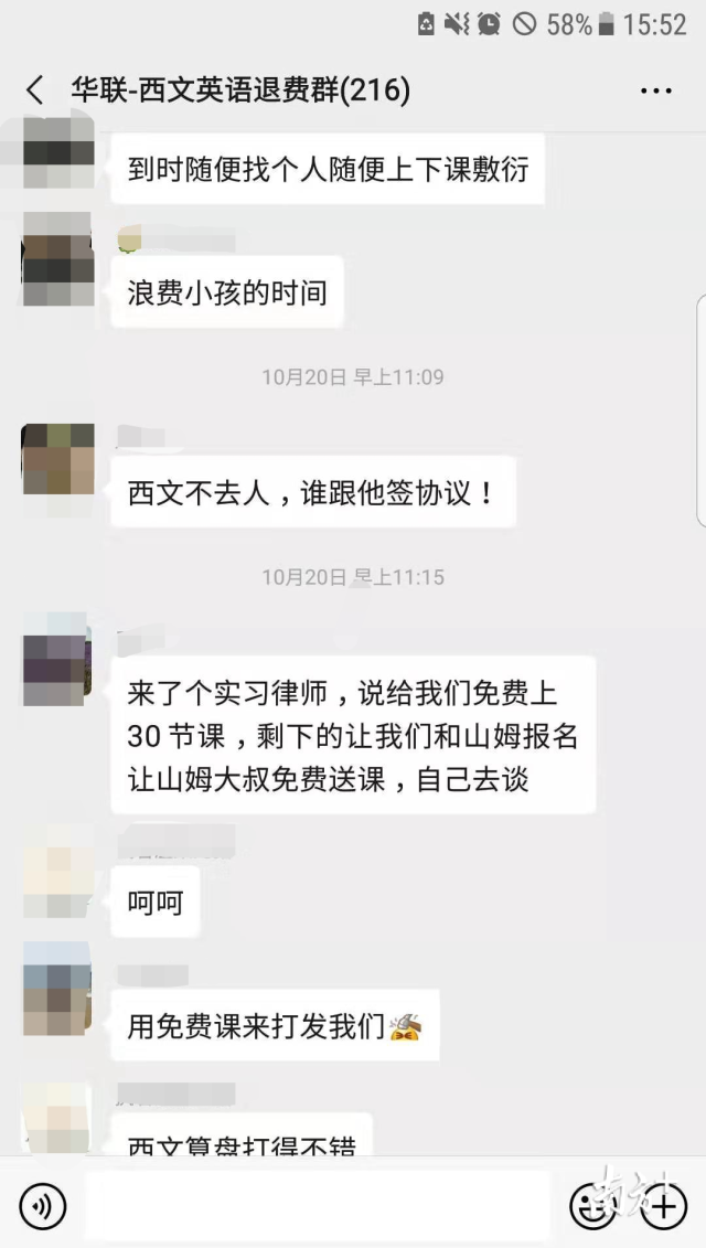 陳先生介紹,消費者自發(fā)組建的“華聯(lián)-英語西文退費群”里,和他有一樣遭遇的還有215人。每人交學費1-3萬不等,按學費2萬/人算,涉及學費至少400萬元。