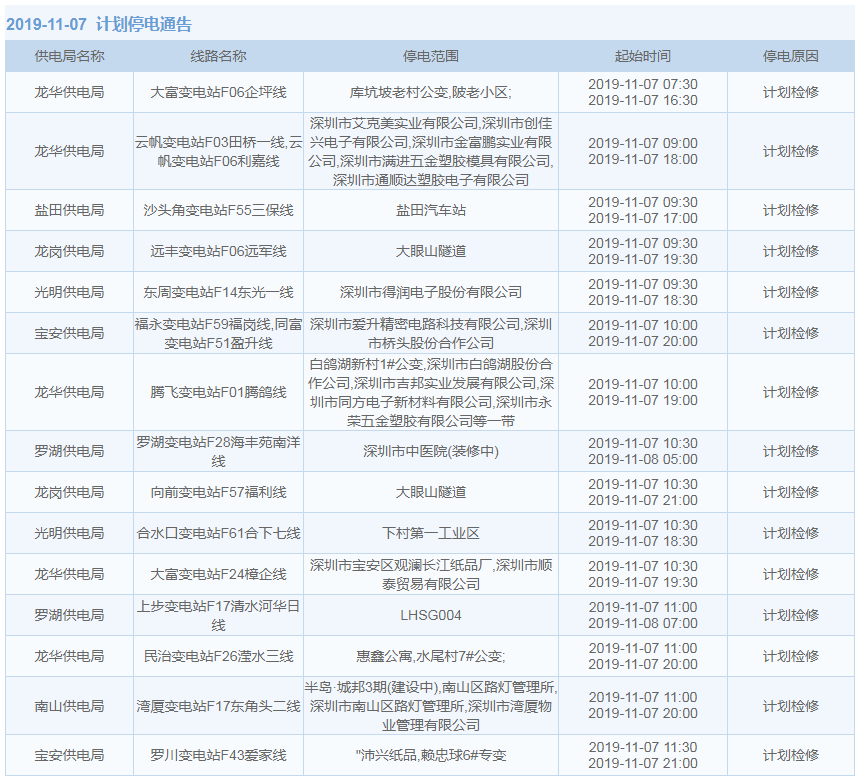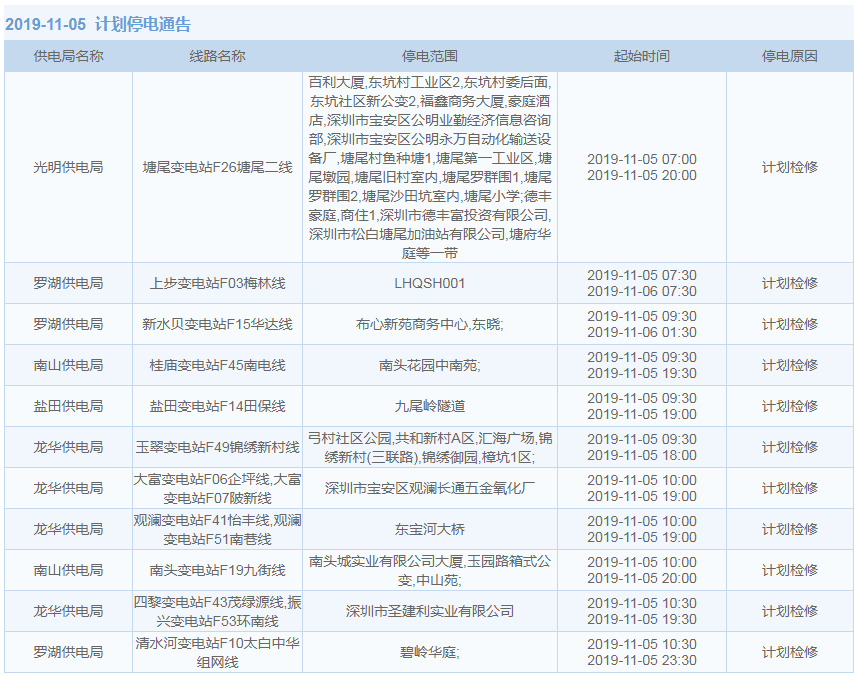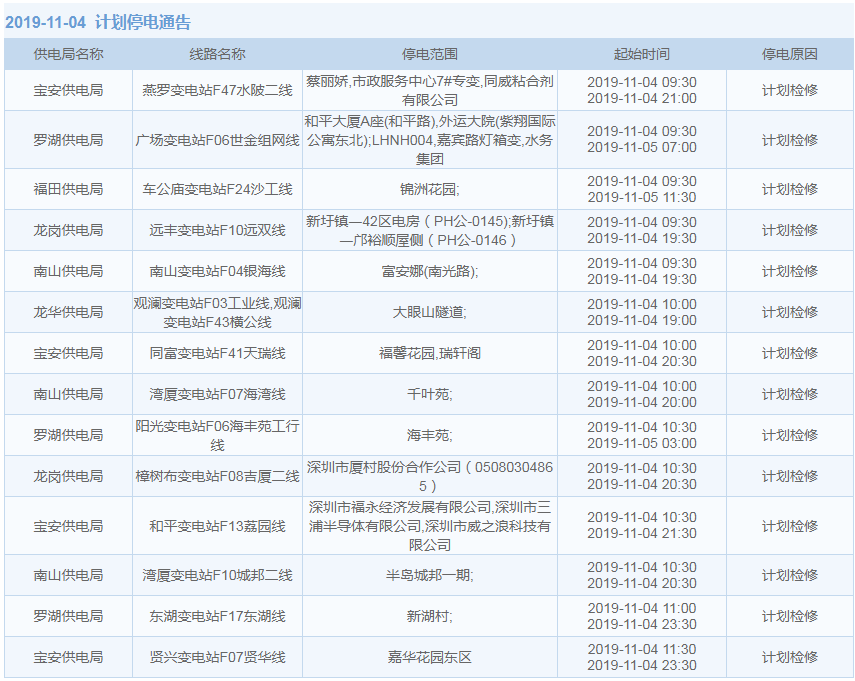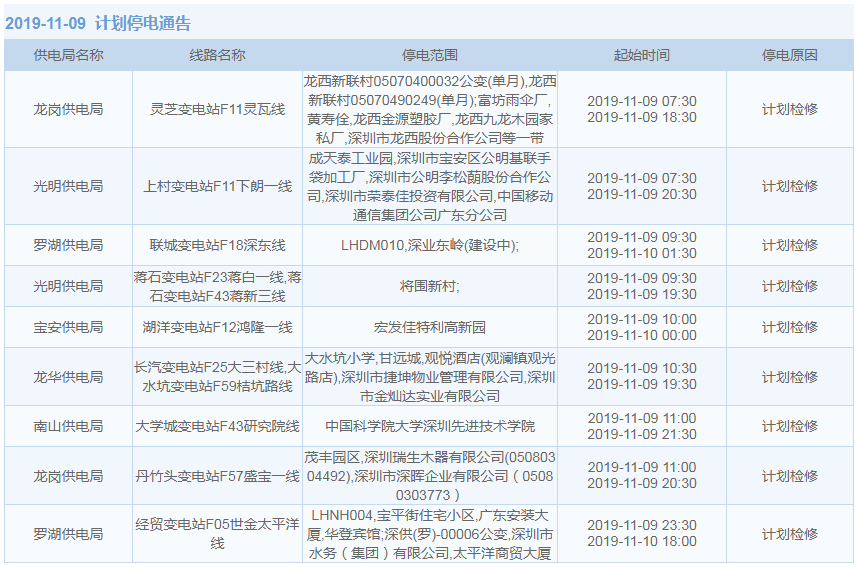 見圳客戶端·深圳新聞網2019年10月29日訊 據中國南方電網最新消息:11月1日至11月15日,深圳這些地方將停電!快來看看有沒有你家的吧。