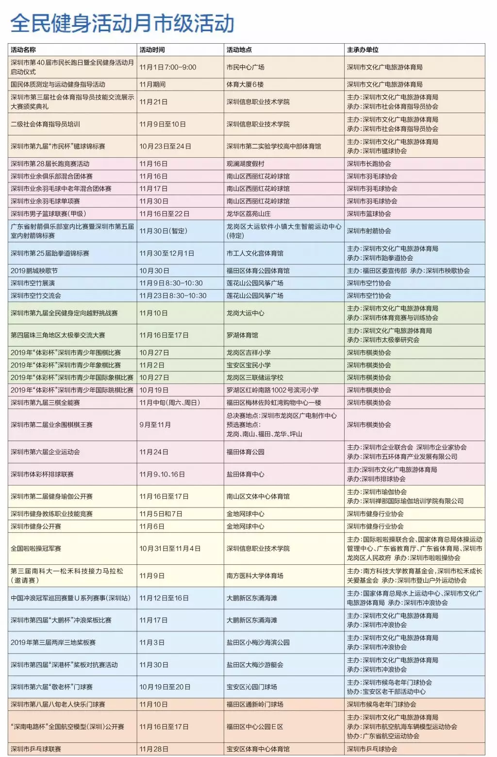 根據(jù)《深圳經(jīng)濟(jì)特區(qū)促進(jìn)全民健身?xiàng)l例》,每年11月是全民健身活動(dòng)月,11月1日是深圳市民長(zhǎng)跑日。上午7時(shí)30分,深圳市副市長(zhǎng)吳以環(huán)宣布活動(dòng)開始并鳴槍起跑,與2000多名干部職工一起,以實(shí)際行動(dòng)宣傳、踐行全民健身。