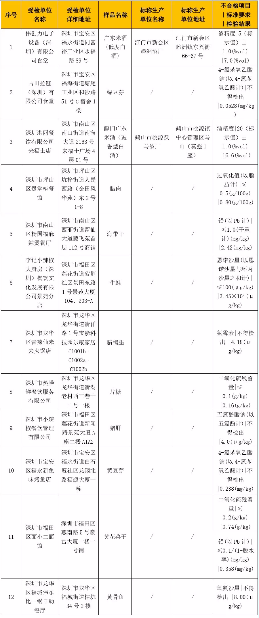 另有一批次豬肝被檢出不合格,受檢單位為深圳市小辣椒餐飲管理有限公司,不合格項目是五氯酚酸鈉(以五氯酚計)。