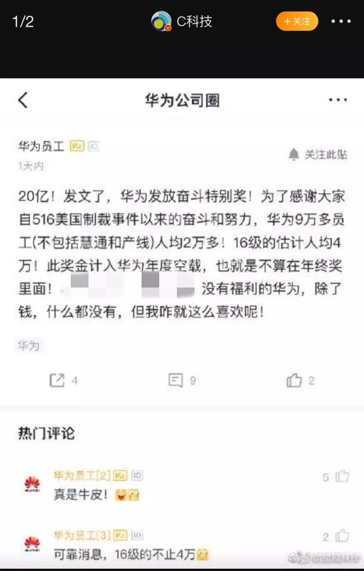 20億?!華為發(fā)獎金人均10萬!男員工立馬給老婆買包包…