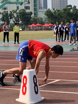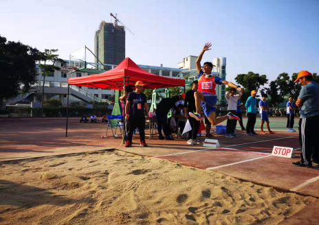 九(3)班朱震國同學(xué)榮獲初中組男子跳遠第四名