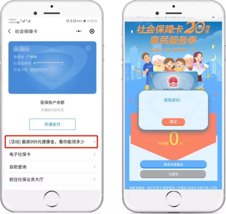綁定電子社??ê?,可通過(guò)社??ㄔ斍轫?yè),回到活動(dòng)首頁(yè),點(diǎn)擊“提現(xiàn)到零錢(qián)”,馬上提現(xiàn)。