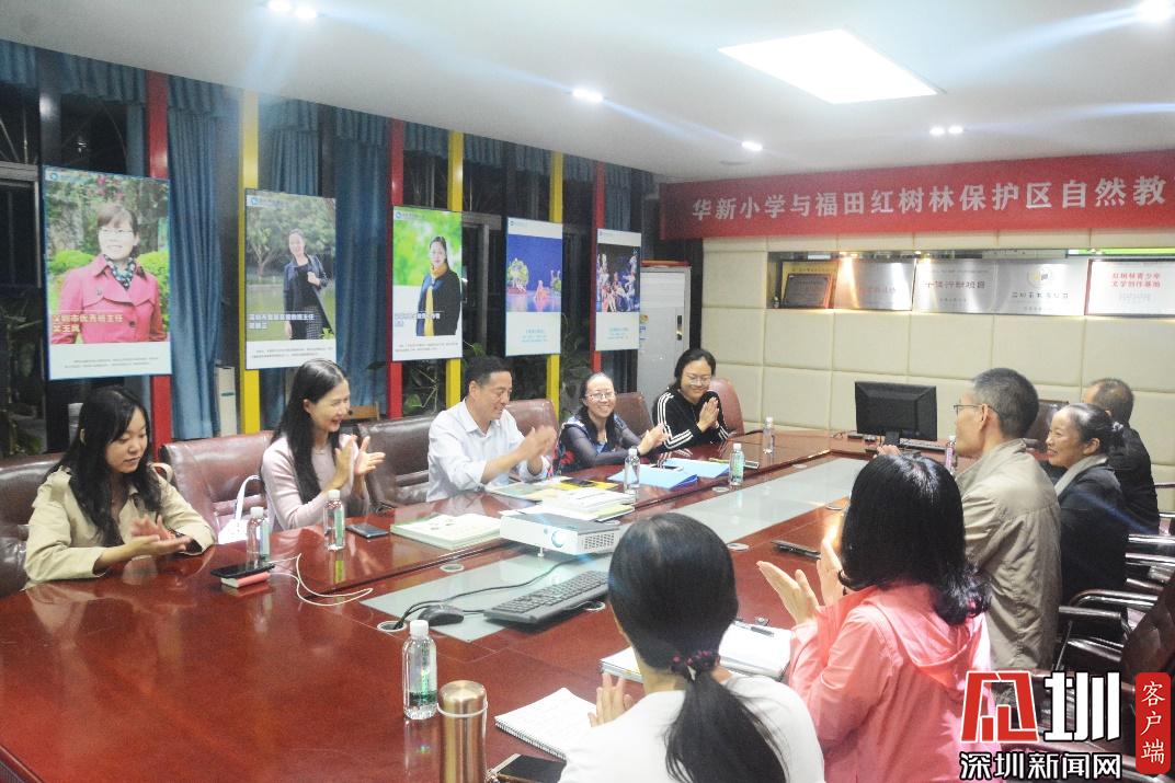 見圳客戶端·深圳新聞網(wǎng)2019年11月22日訊 (見圳客戶端、深圳新聞網(wǎng)記者 曹園芳 通訊員 鄧麗云)11月21日,華新小學與福田紅樹林保護區(qū)自然教育合作簽約儀式在華新小學二樓會議室舉行。與會的有華新小學張偉校長、教導處潘春林主任、課程部鄧麗云主任、美術科組長胡美莉老師、深圳市觀鳥協(xié)會會員陳苗老師,福田紅樹林保護區(qū)管理局王孟琪副局長、保護區(qū)管理局宣教組兩位負責人胡柳柳與楊瓊、保護區(qū)管理局兩位宣教員石俊慧與陳佳熒。鄧麗云主任和楊瓊博士分別介紹了雙方的課程特色與實踐方案。