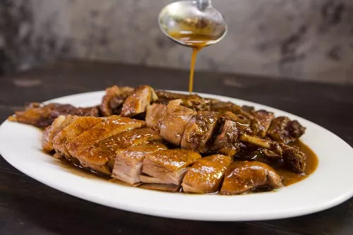 不知是哪位調(diào)皮的美食家曾經(jīng)說過,沒有一只鴨子能活著走出南京,這句話放在深圳同樣適用!燒臘作為廣府菜中閃亮的明星,占據(jù)了廣府菜的半壁江山,在深圳便能深刻體會。深圳的燒臘店遍地開花,燒鴨燒鵝隨處可見,光明乳鴿更是赫赫有名。在深圳,從巷子里的街頭小店,到攘來熙往的商場,再到小有名氣的高檔餐廳,都能看到燒臘的影子,可見燒臘之于深圳人的地位,依舊是不可撼動的存在。