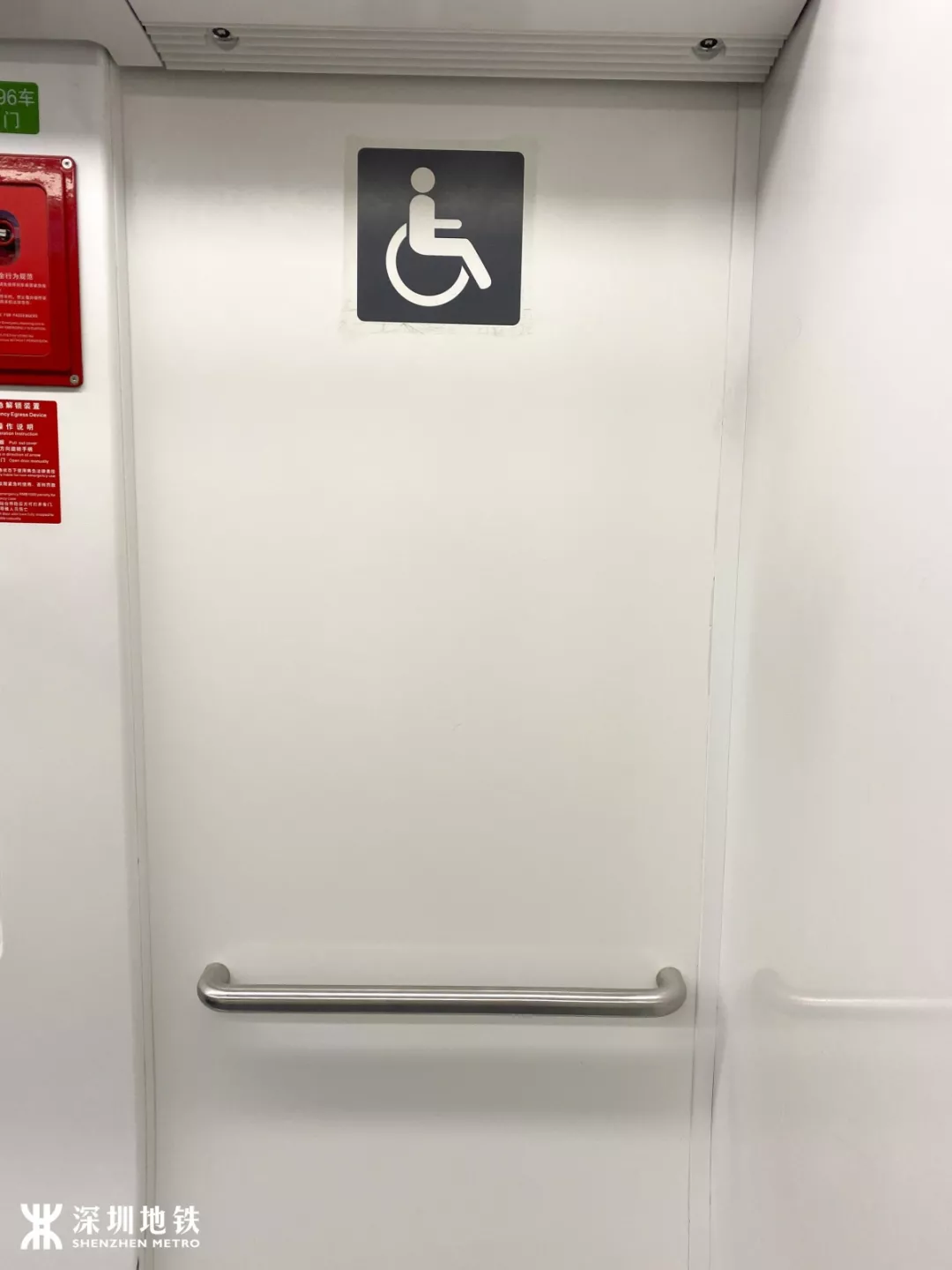 在每一輛列車內(nèi)部,相應的位置都貼有輪椅乘車標識,如果乘車時遇見殘疾人士,移開你的腳步,他們比你更需要這個位置。