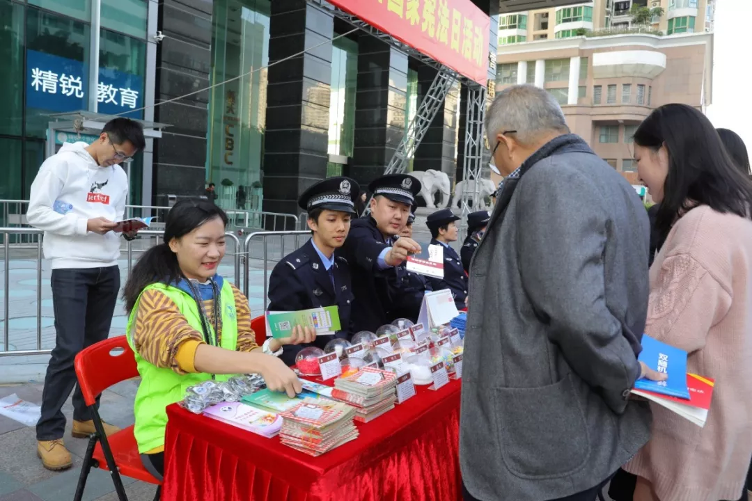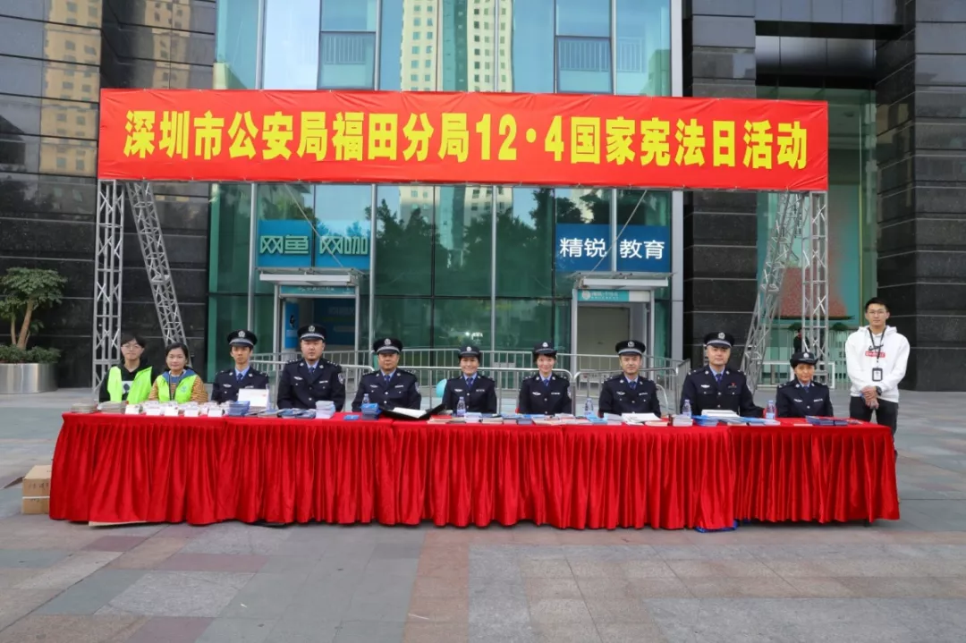 為全面貫徹落實習近平總書記全面依法治國新理念新思想新戰(zhàn)略,增強全社會憲法意識,弘揚憲法精神,深圳市公安局福田分局響應上級號召,于12月4日下午福田區(qū)馬成時代廣場開展了“12·4”國家憲法宣傳日活動。福田公安分局法制科牽頭組織人口科、治安科、刑警大隊、經偵大隊、網警大隊、禁毒大隊、出入境管理大隊單位骨干民警參加此次活動。