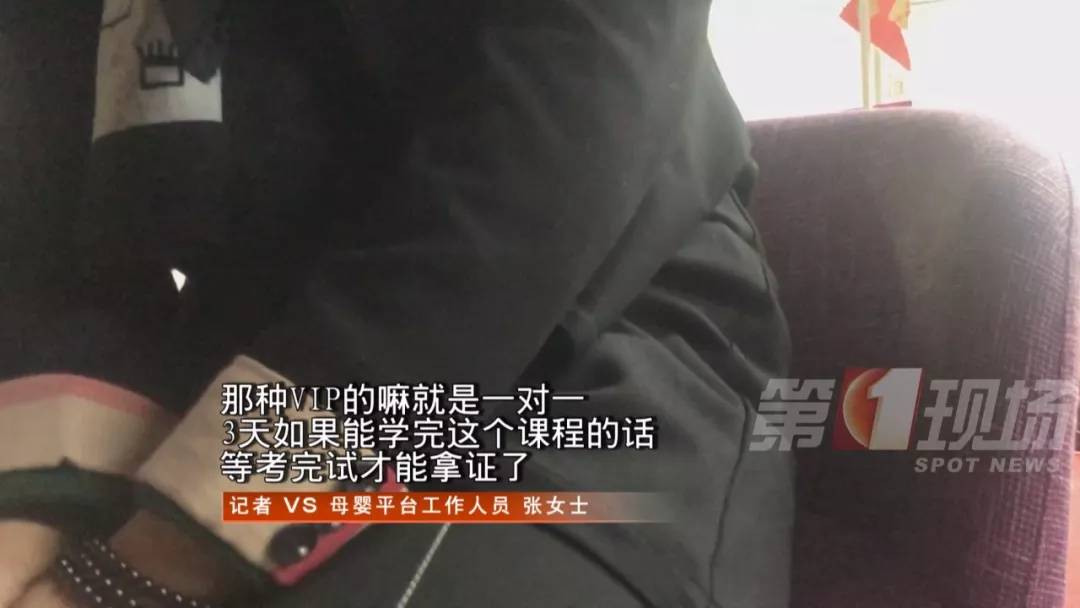 工作人員繼續(xù)介紹,有證書的保姆育嬰師起薪至少會(huì)高出500元。如果記者現(xiàn)在交錢學(xué)三個(gè)班,他們還可以贈(zèng)送價(jià)值4500元她們研發(fā)的APP課程,并表示他們這家機(jī)構(gòu)在深圳這一塊是前五名的。