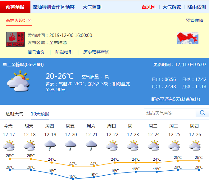 深圳這兩天天氣溫暖 19-21日有冷空氣 氣溫下降還有小雨