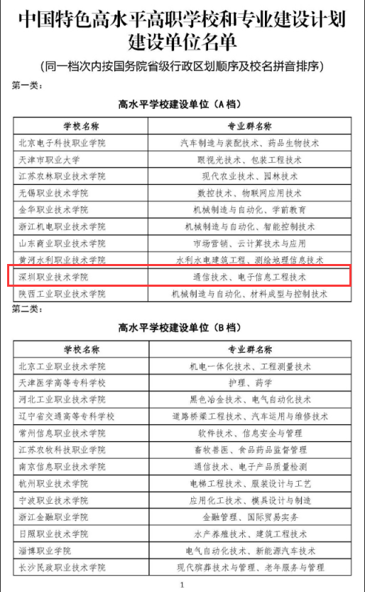 “雙高計劃”第一輪建設單位名單公布 深圳兩職業(yè)學院上榜