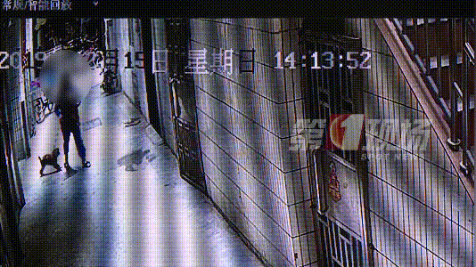 隨后,范先生找到物業(yè)管理處調取周邊監(jiān)控,發(fā)現(xiàn)在當天下午2點13分左右,一名藍衣女子牽著一只小狗走到這個路口,沒過多久,樂樂也跟著跑出來,女子隨即蹲下將樂樂抱走。