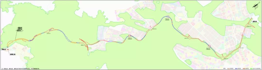 項(xiàng)目起點(diǎn)位于蓮塘口岸處,終點(diǎn)設(shè)置在惠鹽高速,與深汕高速交匯的金錢(qián)坳立交處,經(jīng)羅湖區(qū)、龍崗區(qū)、坪山區(qū),路線全長(zhǎng)約32.2公里。