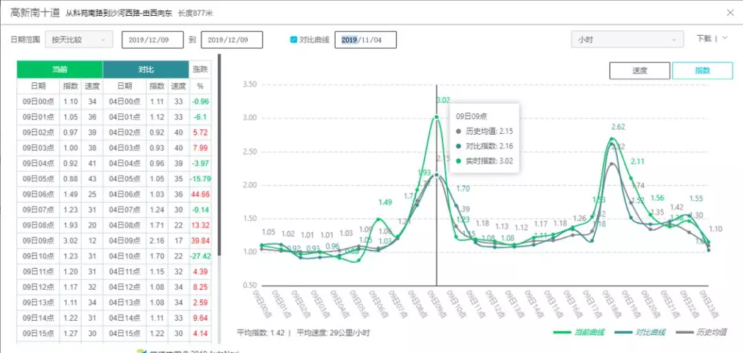 早高峰高新南十道(沙河西路至高新南環(huán)東段)擁堵指數(shù)由3.02下降至2.16,下降幅度28.5%