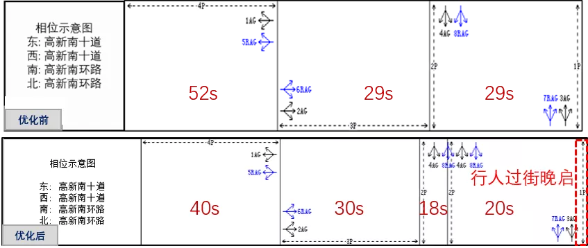 晚高峰優(yōu)化前后配時(shí)方案