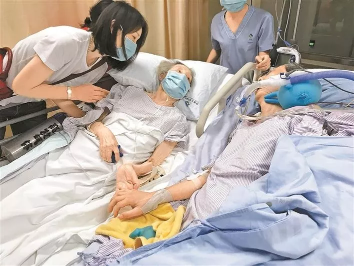 7月27日20點(diǎn)48分,香港大學(xué)深圳醫(yī)院的ICU病房里,兩位病重的老人的手握在了一起。在并排擺放的兩張病床上躺著的,是一對攜手恩愛57年的耄耋伉儷——高先生和彭女士。這兩位都已病重住院的老人,完成了或許是他們?nèi)松械淖詈笠幻妗_@一幕,讓病床邊的許多親屬和醫(yī)務(wù)人員都淚流滿面。