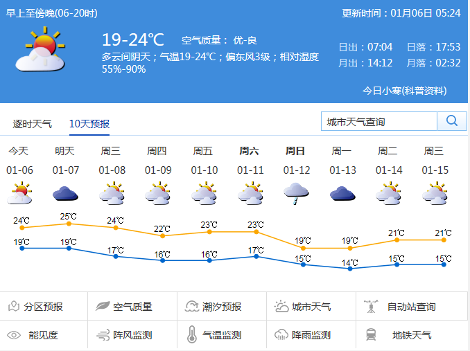 見圳客戶端·深圳新聞網(wǎng)2020年1月6日訊 據(jù)深圳市氣象臺(tái)消息,預(yù)計(jì)本周初深圳多云間陰天,早晚有零星小雨和輕霧;周三至周四受弱冷空氣影響,沿海和高地陣風(fēng)6~7級(jí),早晚清涼;周五至周六多云,氣溫回升,周日受冷空氣影響,氣溫再次下降。