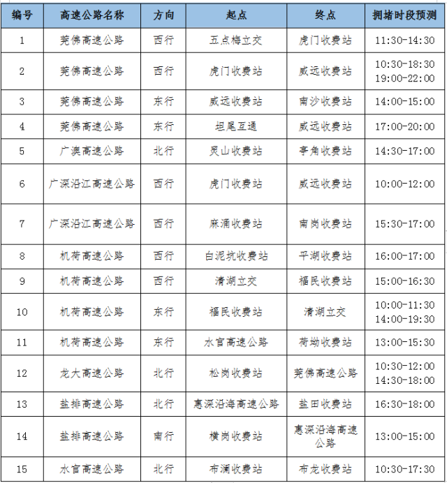 具體來看主要高速公路離深擁堵時(shí)段預(yù)測(cè),如果可以,避開這些時(shí)間: